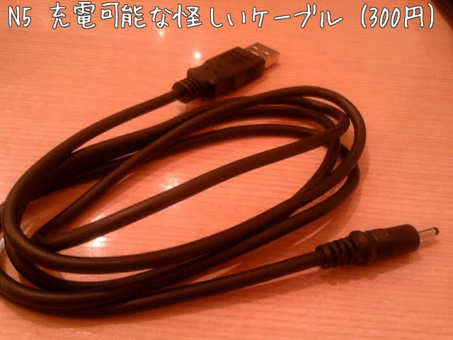 このアダプタは端子が USB なので、 N5 以外にもモバイル端末等充電することが出来ます。とても便利・安心です。